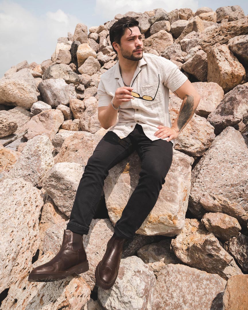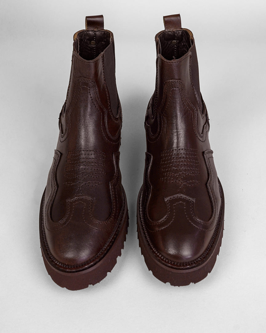 Chelsea vaquera de piel atanada, plantilla de confort, ajuste con resorte, con suela de eva pegada, garantiza la mejor fijación y durabilidad.
