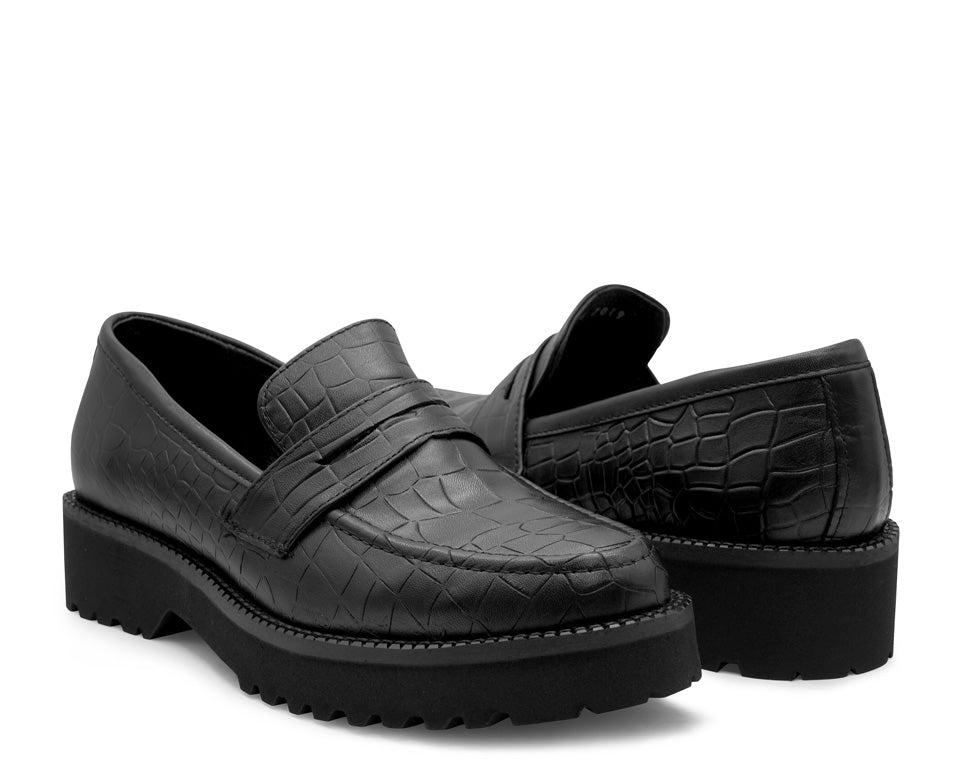 Diseño elegante estilo chunky, piel grabada, con antifaz de adorno en el empeine, ultra ligero y su suela es pegada, garantiza máxima fijación y durabilidad.