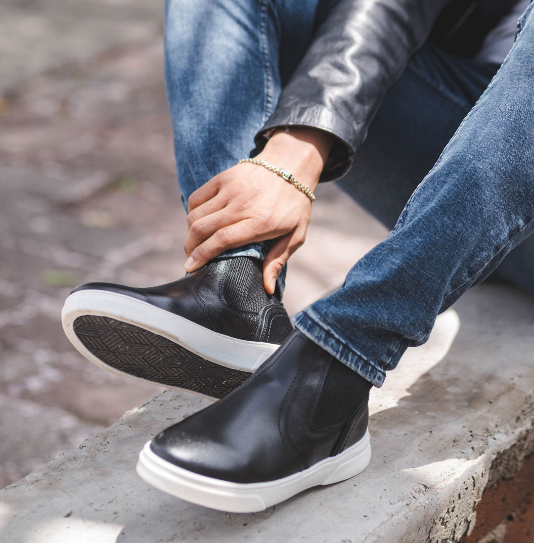 Botín chelsea casual con piel en acabado atanado y flother en corte y forro vacuno, con ajuste de resorte, plantilla multiconfort y suela tr.